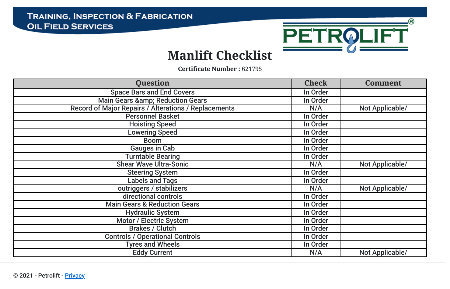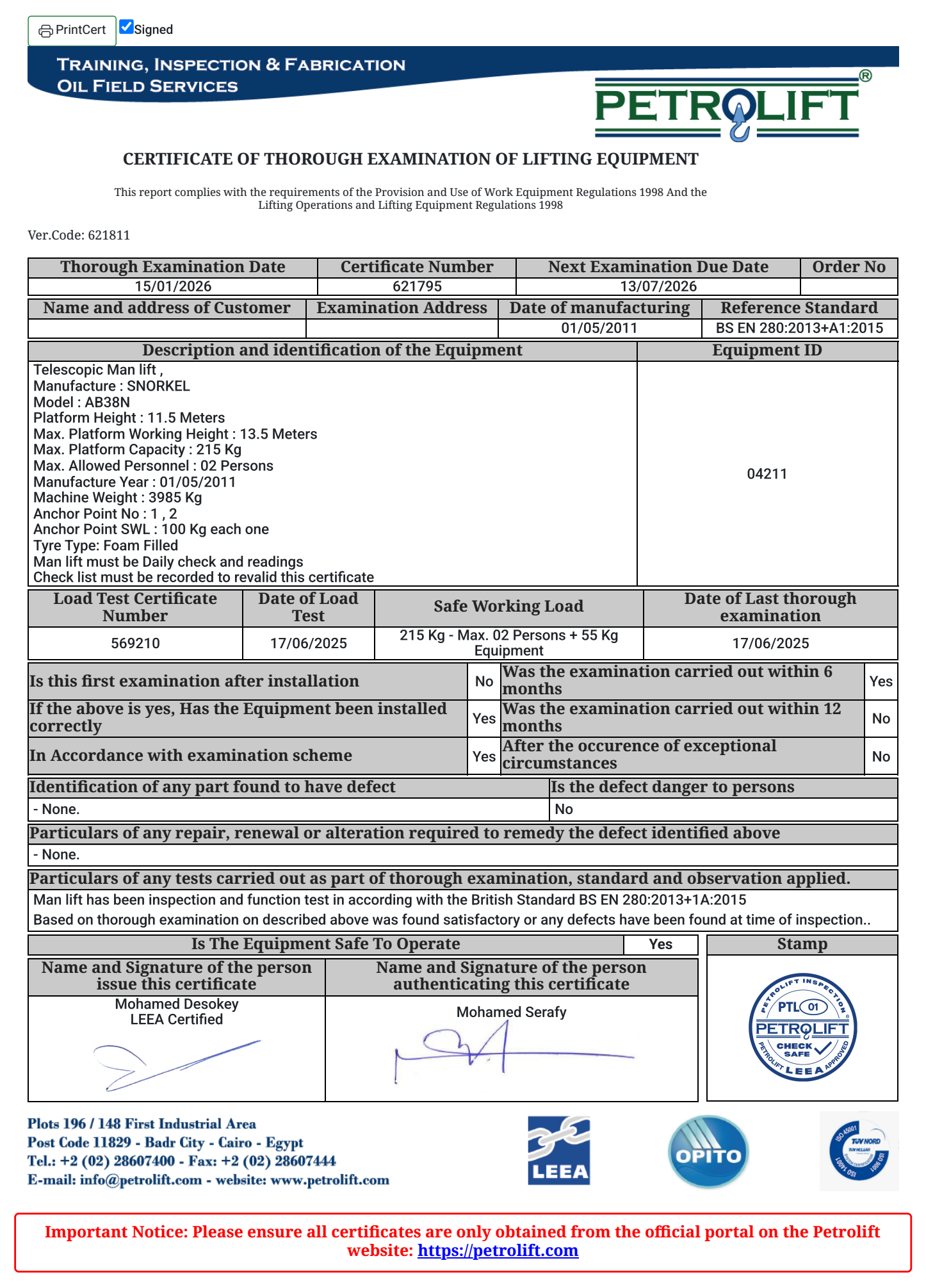 A 13.5 m Electric manlift.
